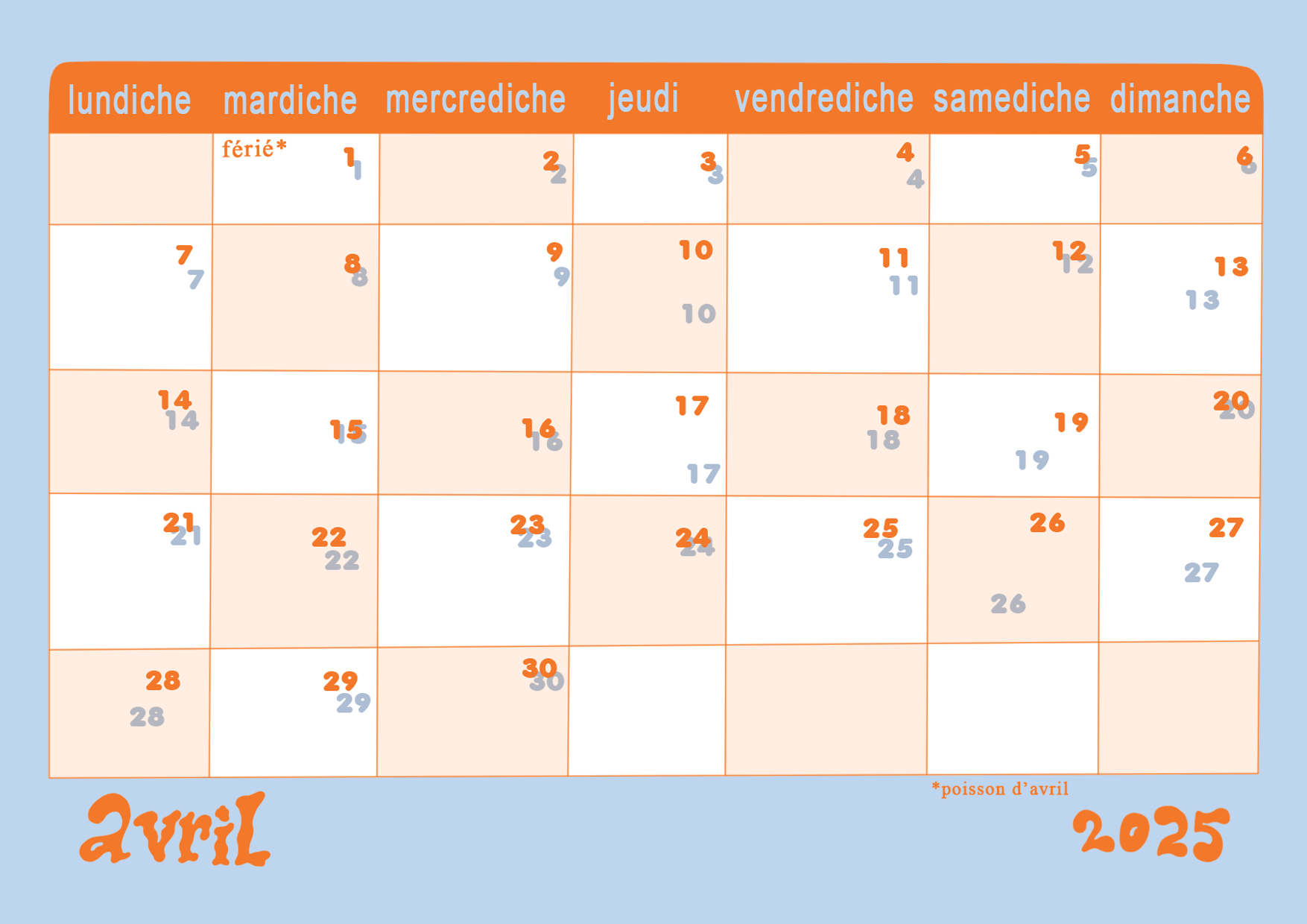 -chaque mois 1 horoscope + les cases avec les jours dudit mois